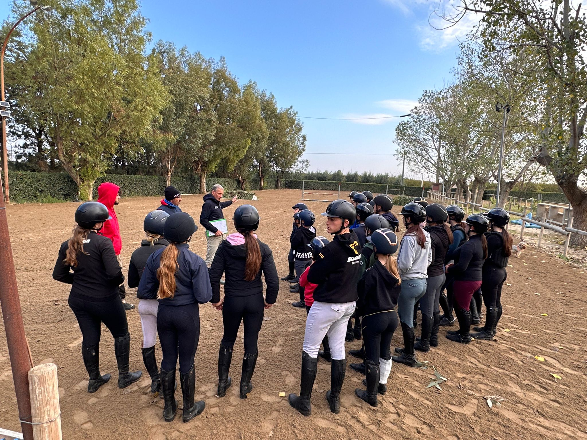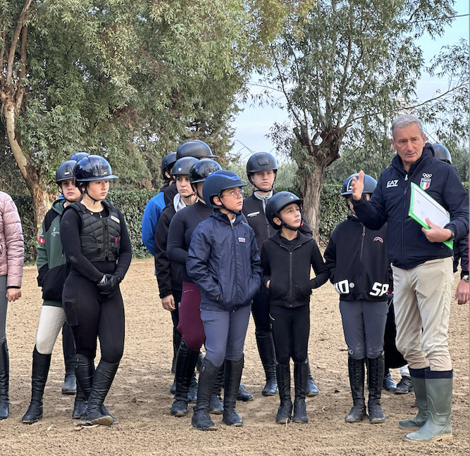 Ben 25 giovani amazzoni e cavalieri, provenienti da Calabria, Campania e Puglia, hanno preso parte allo stage, che si è svolto nonostante le copiose piogge di venerdì notte. Le condizioni meteo hanno imposto un cambio di programma: la prova lunga di 1800 metri è stata ridotta di circa un terzo e articolata tra i due campi in sabbia e l’adiacente campo con ostacoli fissi e laghetto, permettendo comunque lo svolgimento regolare delle attività.