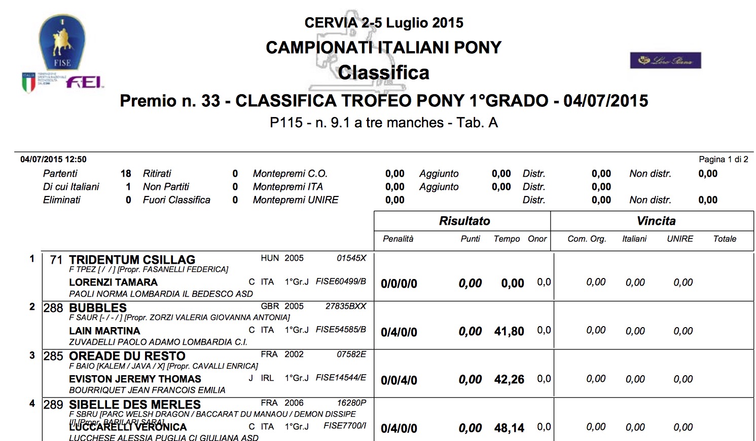 Veronica Lucarelli con il suo Sibelle Des Merles, che monta da solo sei mesi,  si è piazzata quarta al Campionato Italiano Pony – I° Grado svoltasi a Cervia  riportando nella prima gara  0 penalità, un errore nel secondo percorso della seconda giornata, con   0 al percorso  base e  ancora 0 nel barrage conclusivo con cui accede all’ottimo quarto posto in una gara davvero brillante. Un risultato che non solo fa esultare la sua istruttrice Alessia Lucchese e il Circolo Ippico Giuliana, e la Puglia  ma quanti seguono da tempo questa valente ragazzina che con il suo Onaro aveva già dimostrato valore, anche per l’affetto con cui ha combattuto per salvare il suo cavallo e riportarlo in gara. Oggi questo risultato rende merito ad entrambe.